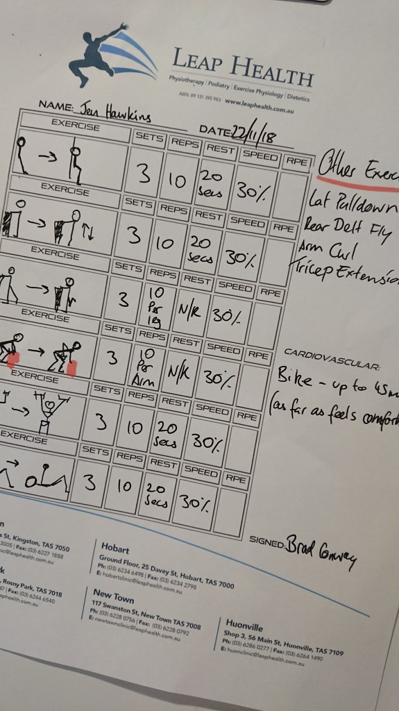 I still have a ban on running ~ sad face ~ and a modified version of my original exercise with several more added to it. I can however cycle, with a time (and pain) limit, but this is my cardio and I am going to embrace it like there’s no tomorrow.